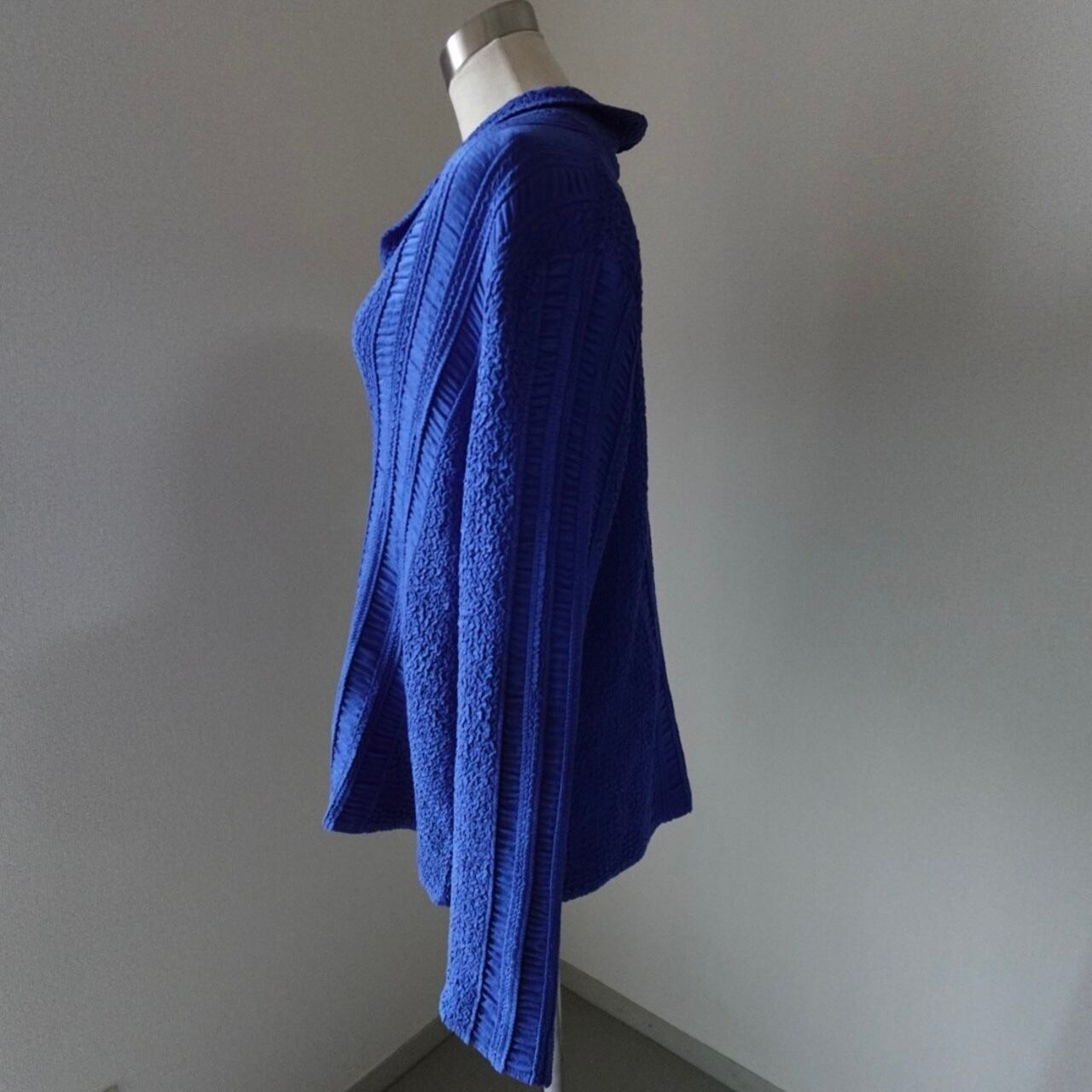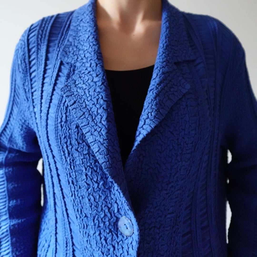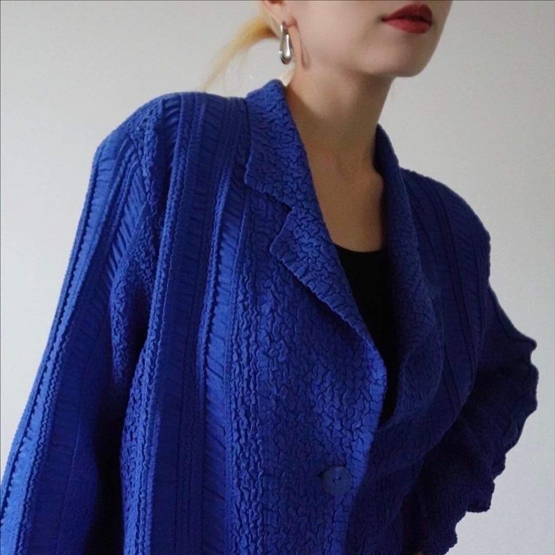 目を引くパキッとしたブルーカラーでこれだけでコーデが華やかな印象になります。