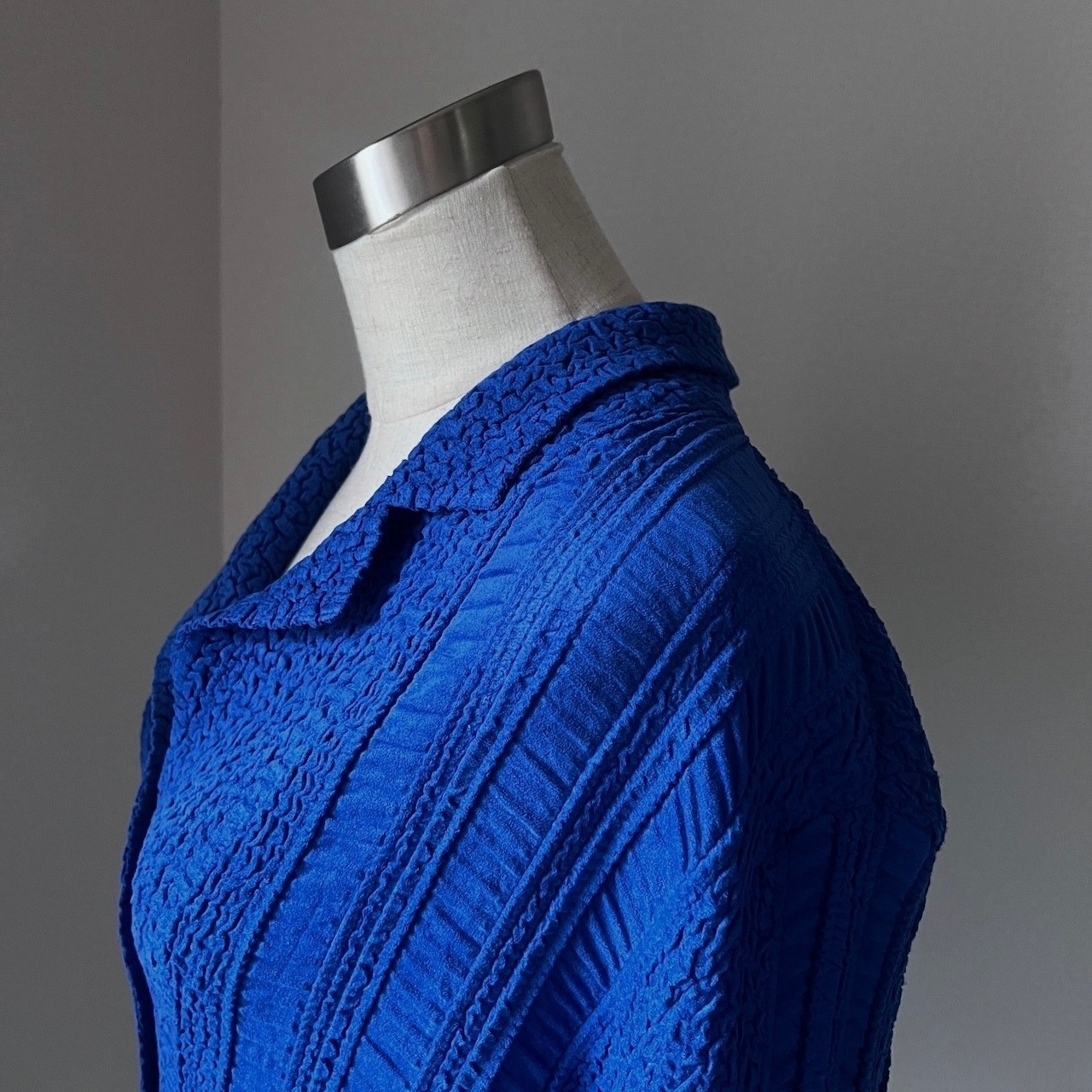 触るとぽこぽことした立体的なデザインが特徴のシャツ。