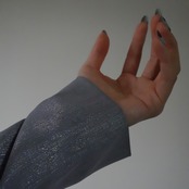ポリエステルなのでツルッとした質感と柔からさもあります。表部分は多少ラメ特有のザラっとした質感もあります。やや薄めのシャツです。