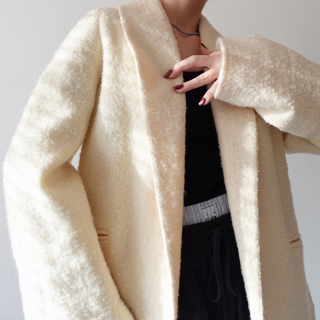 表面がぽこぽこと立体的に糸が出ているボタンレスジャケット。