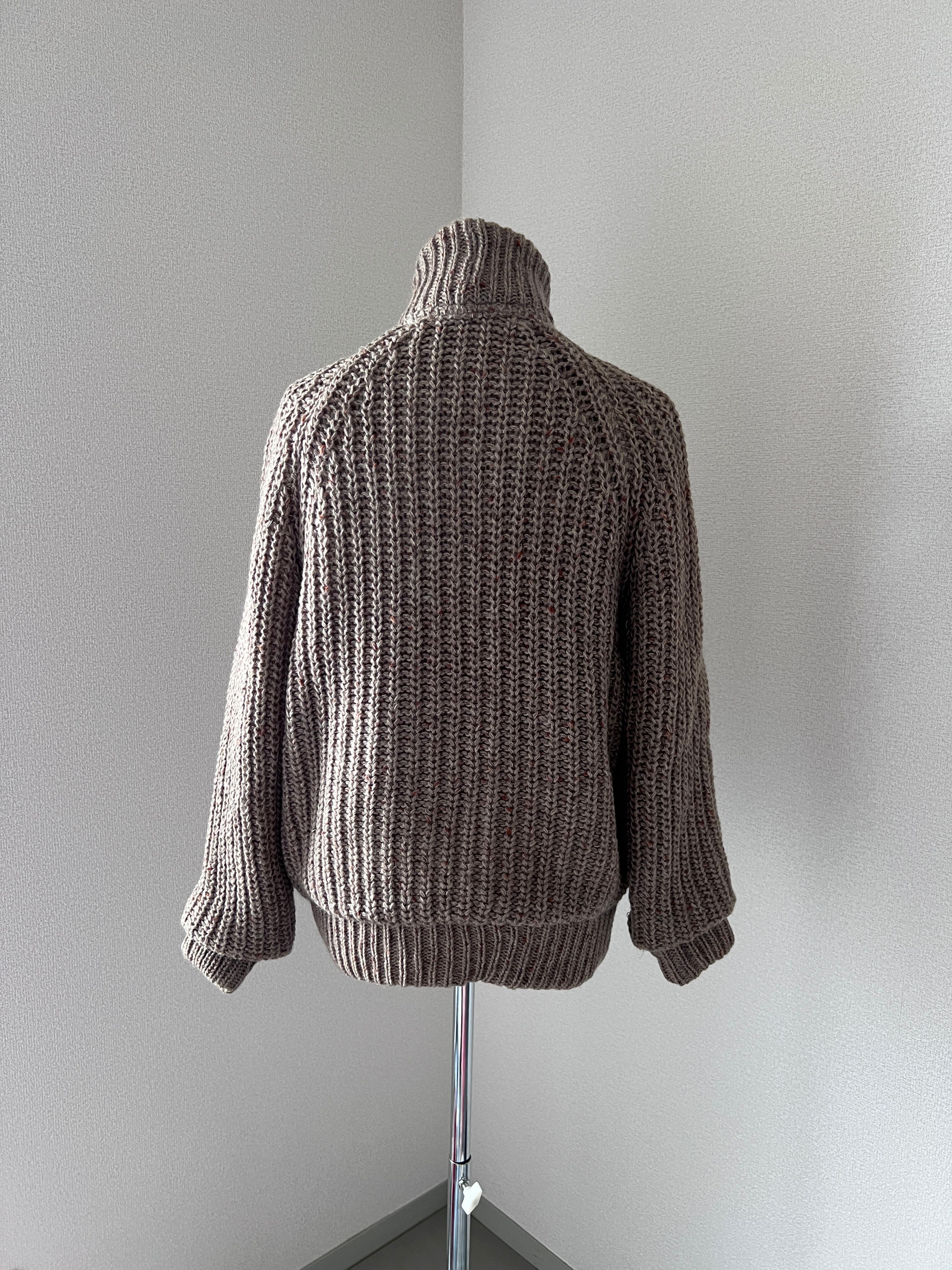 肉厚でボリューム感があり、ざっくりとしたリブ編みがカジュアルながらも上品な雰囲気もあります。
