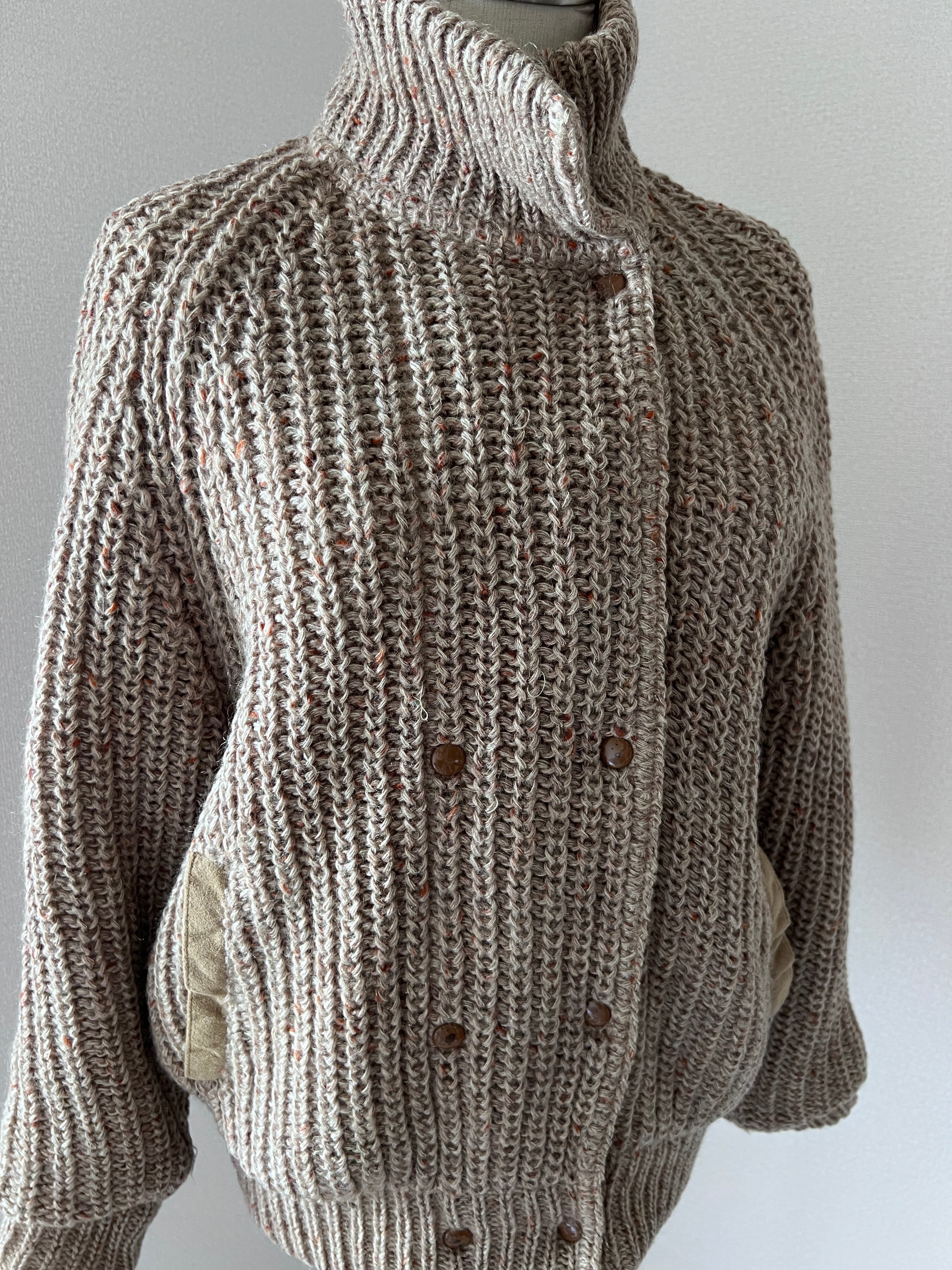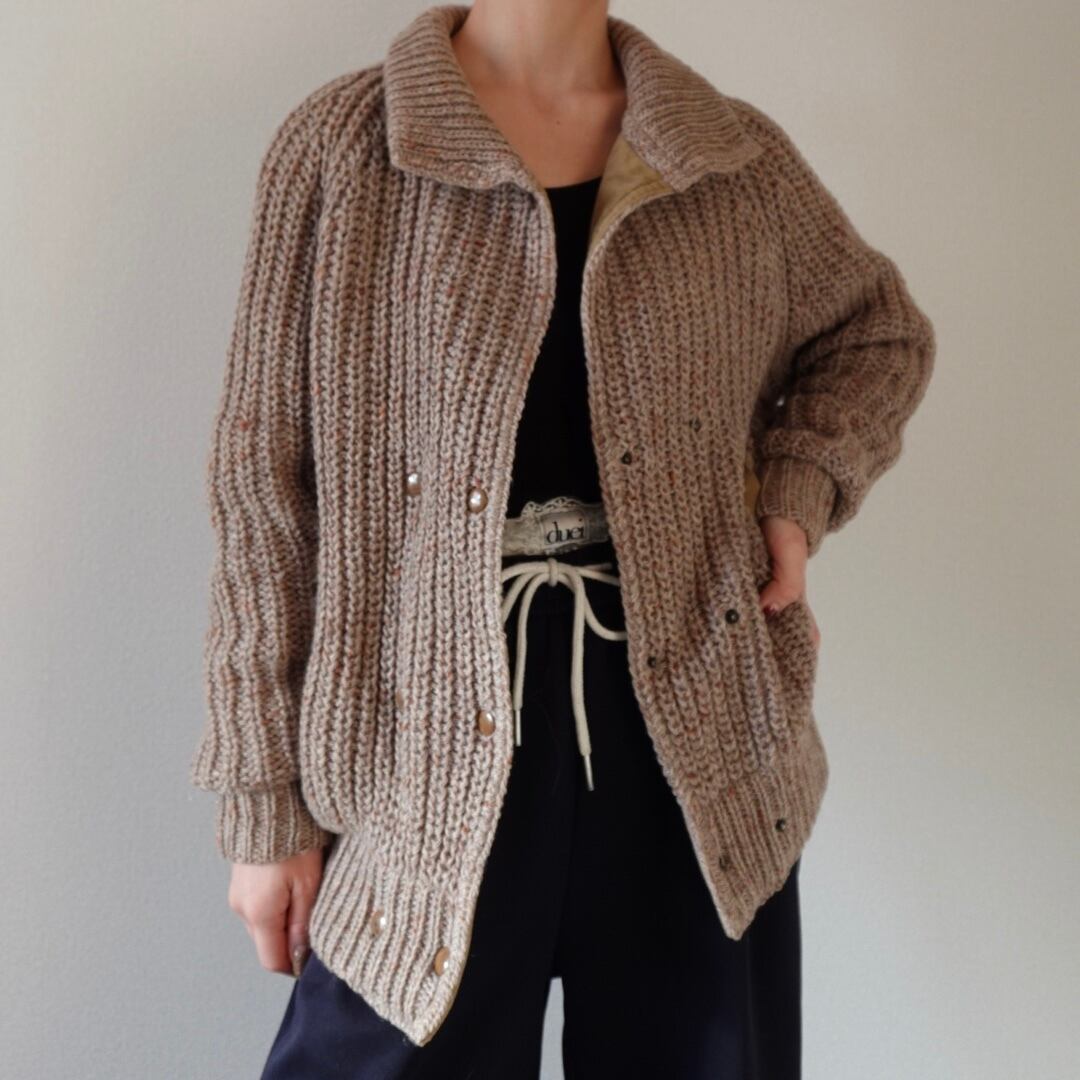 太い毛糸でざっくりと編まれたリブ編みが特徴です。