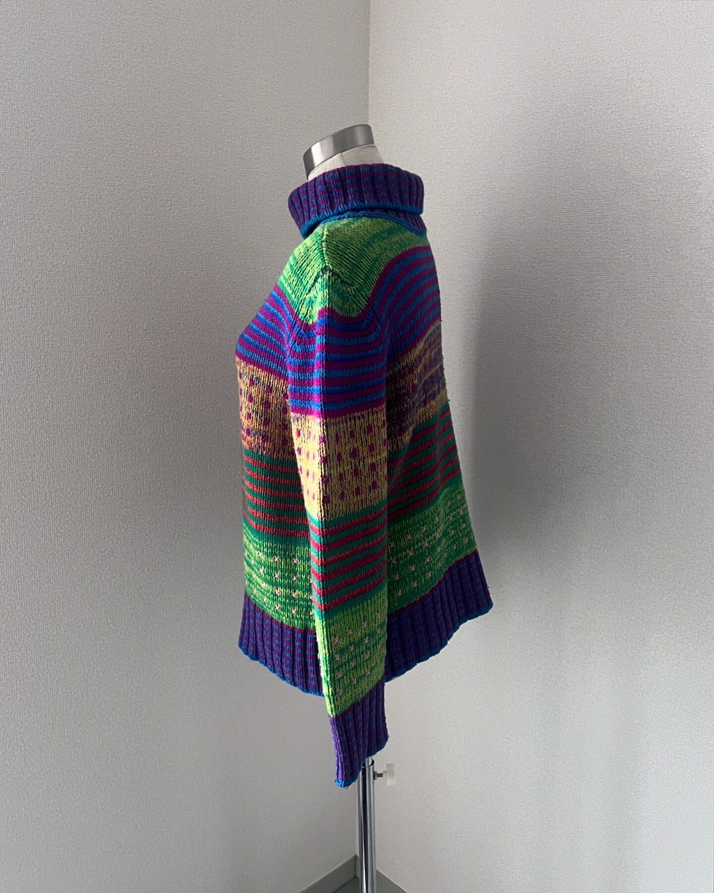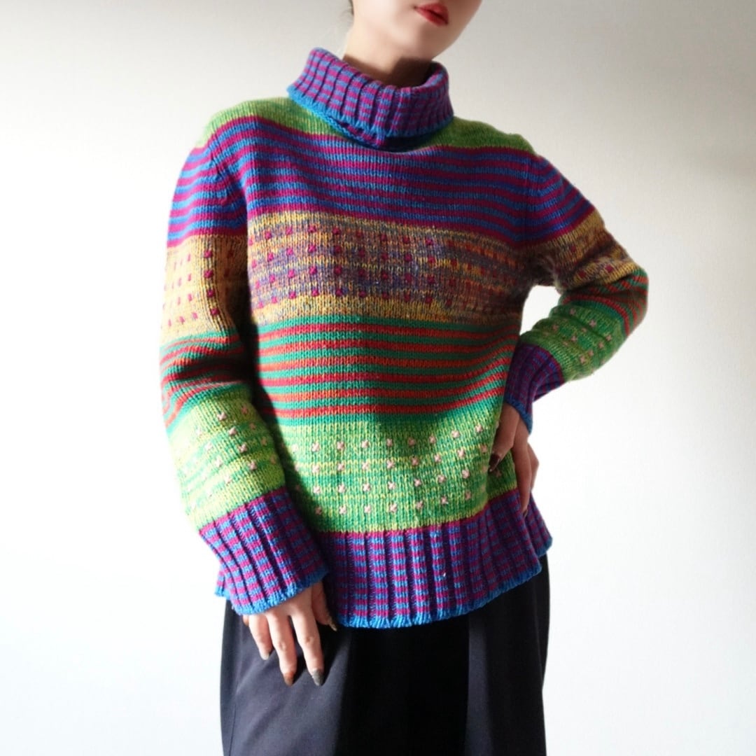 太めの毛糸で編まれたレトロな雰囲気があります。